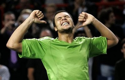 The 13th seed, who will qualify for the season-ending Masters Cup if he wins the Paris indoor tournament, will meet American Andy Roddick for a place in the last four. Tsonga, who lost to Djokovic in the Australian Open final before gaining revenge in the Thailand Open final last month, got off to a bright start, breaking decisively in the fifth game to take the opening set before dozing in the second. The Frenchman, who was sidelined with a knee injury for three months before the U.S. Open, woke up in the third set, stealing Djokovic's serve in the second game with a superb cross-court passing shot. He then held serve and sealed the win on his second match point with an ace, triggering a loud roar from the Bercy sports hall crowd. "Bercy is my home and you need my permission to get in and today, I would not give that permission," Tsonga told the crowd. "For now, I don't think about (the Masters Cup). I take it match by match. If I beat Andy, maybe I can snatch a place. So we will see." Djokovic, who has now lost twice to Tsonga in the past four weeks, put on a brave face after his defeat. "I know that I'm not playing on my level the way I played maybe throughout the first part of the season but this is sport. You have ups and downs," said the Serb. "He made some unbelievable shots in that second game (of the third set), I think, which was crucial and decisive."