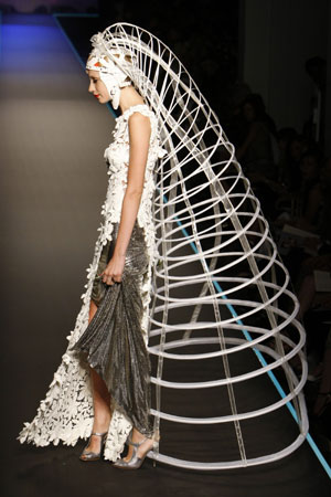 A model presents a creation by French designer Jean-Paul Gaultier as part of his Autumn/Winter 2008-2009 Haute Couture fashion show in Paris July 2, 2008. [Agencies]