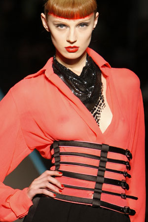 A model presents a creation by French designer Jean-Paul Gaultier as part of his Autumn/Winter 2008-2009 Haute Couture fashion show in Paris July 2, 2008. [Agencies]