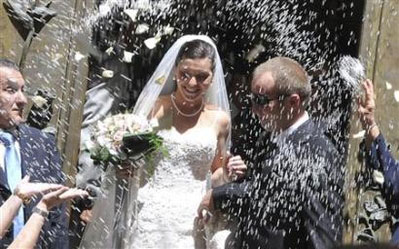 Lucia Riina, the daughter of the most feared Sicilian Mafia boss Salvatore 'Toto' Riina, leaves at the end of her wedding ceremony with Vincenzo Bellomo (R) in Corleone July 23, 2008. [Agencies]