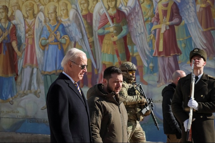 Biden makes surprise trip to Kyiv amid anti-war rally at home