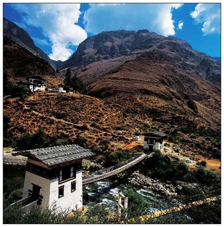 飞机开始降低高度在森林的峡谷中穿行,不久就看到了一块空地。这时飞机就像被巨大的磁铁吸入了跑道,降落、滑行、停机,这几个动作大约也就是在1分钟内完成的。当我们走下飞机环视四周,才看清楚帕罗机场地处一个小盆地。一问才知道,跑道的长度也就1800米。飞行员高超的技术简直就像玩空中特技